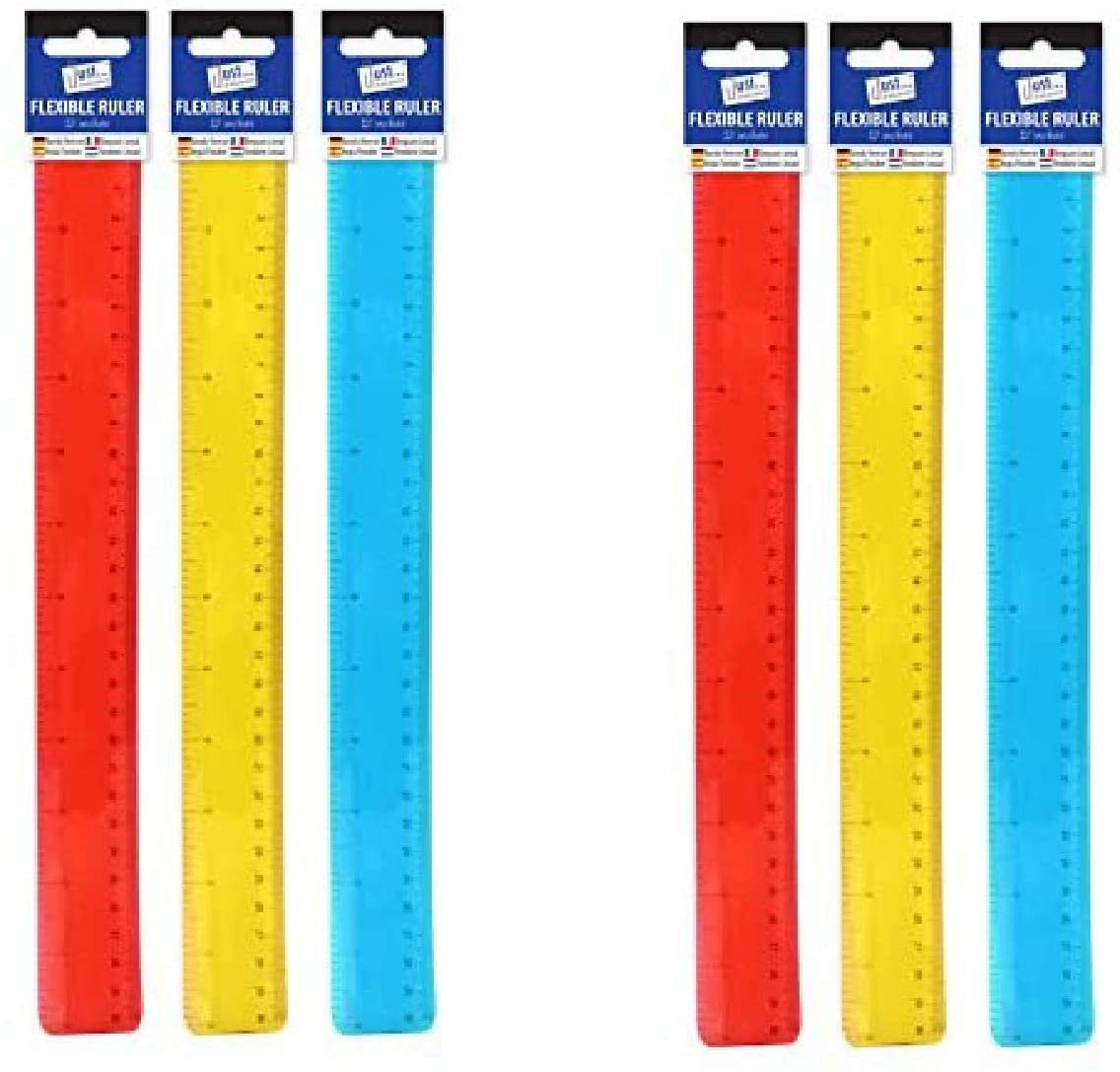 3Ace Crafts Bendy 12″ Ruler Assorted Colours – Transparent Flexible Bendy Rulers for Metric Measure School Office Work Stationery (Pack of 2)