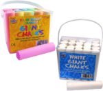 Combo of 2 – Assorted Coloured Chalks and White Giant Chalks Box – Great For Giant Size Drawings Playground Outdoor, Art and Crafts – Comes with Handy Bucket Tub