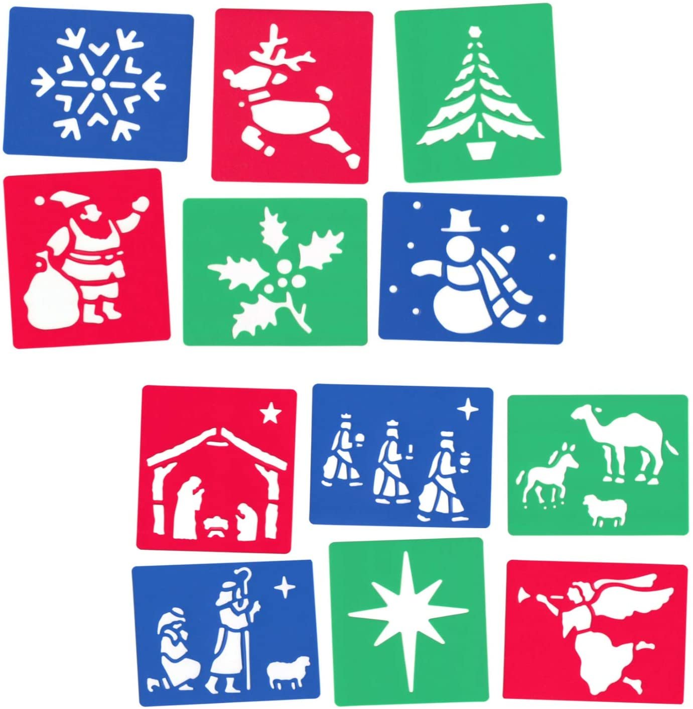 Combo Pack of 2 Set -“Christmas Stencils” and “Nativity Stencils” – For Children’s Arts and Crafts Plastic Washable Stencils