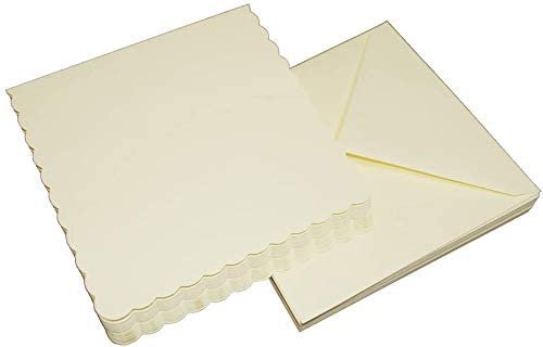 3Ace Crafts Ivory 7 x 7 Inch Blank Scalloped Greeting Cards & Envelopes – for All Types of Card Making – Holiday, Invitation Thank You Cards with Envelopes (Pack of 20)