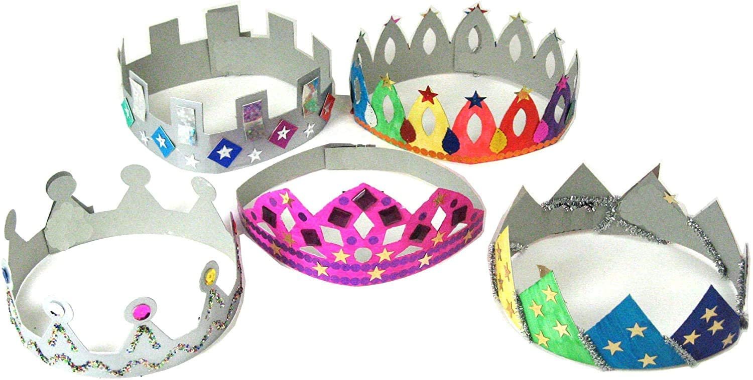 - Perfect for Christmas and children’s birthday parties, this set of card crowns can be painted and decorated with sprinkles, glitter, and other craft embellishments.