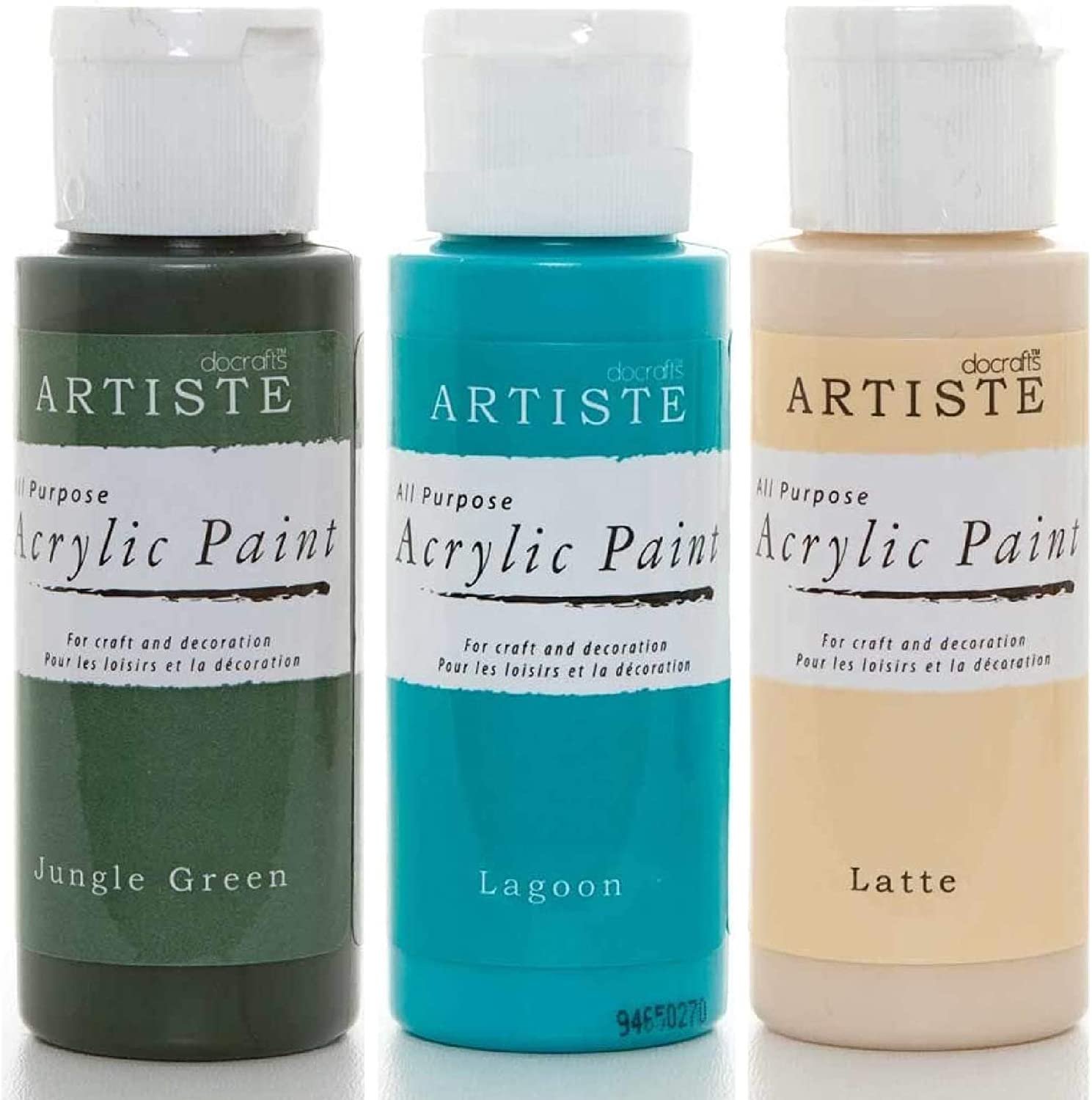 3Ace Crafts Pack of 3 – docrafts Artiste High Quality All Purpose Acrylic Paint (2oz) 59ml – Quick Drying and Waterbased – for Painting, Craft and Decoration – Jungle Green, Lagoon & Latte
