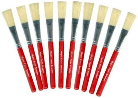 3Ace Crafts Red Handle Paste Brush – Flat Tip Hog Bristle Brush with a Red Handle Pack 10 – Length Approx 155mm
