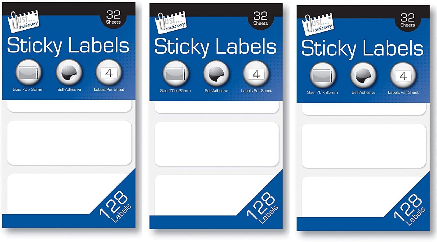 3Ace Crafts Self-Adhesive Sticky Labels – 128 Labels – Multi Purpose Label Stickers – Approx Size 70 x 25mm (Pack of 3)