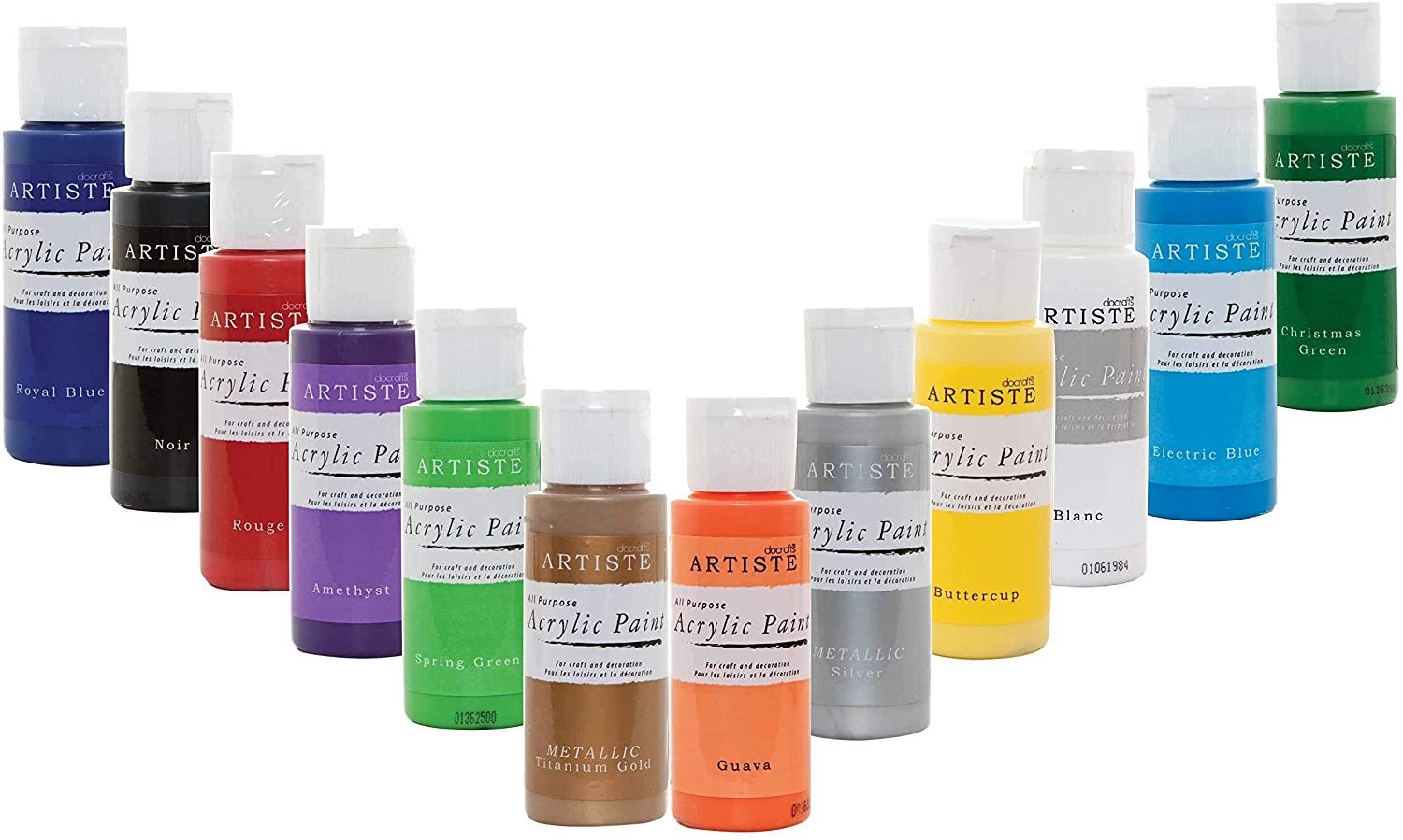Set of 12 Colours – docrafts Artiste High Quality All Purpose Acrylic Paint (2oz) 59ml – Quick Drying and Waterbased for Painting, Craft and Decoration