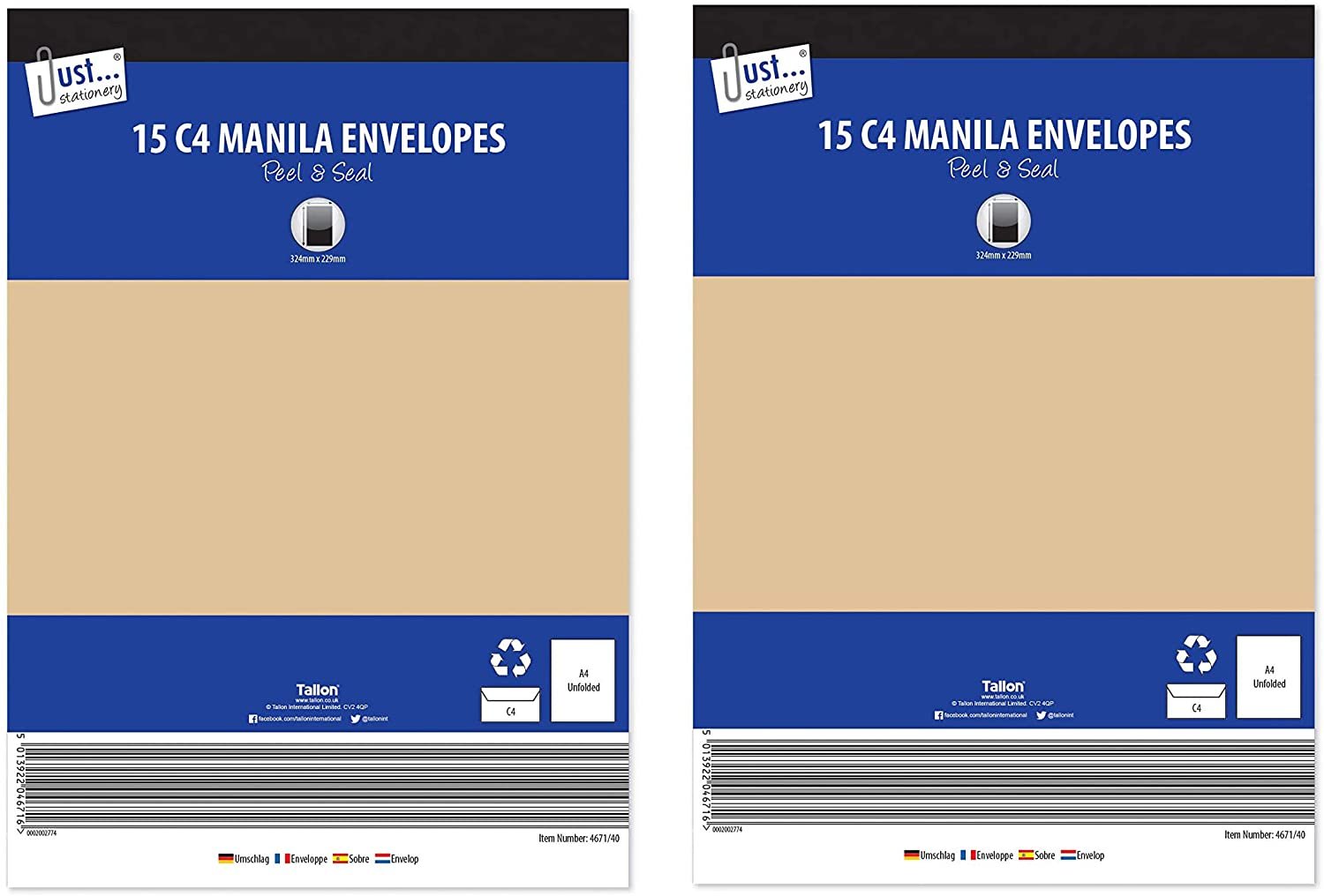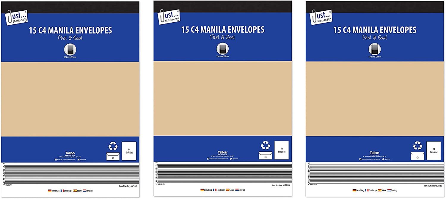 3Ace Crafts Set of 15 – C4 Peel & Seal Manila Envelopes 80gsm – High Quality A4 Folded Envelopes – Security Printed – Size Aprrox 324mm x 229mm