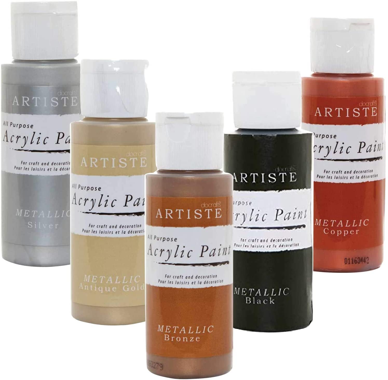 Set of 5 Colours – docrafts Artiste High Quality All Purpose Acrylic Paint (2oz) 59ml – Quick Drying and Waterbased – For Painting, Craft and Decoration