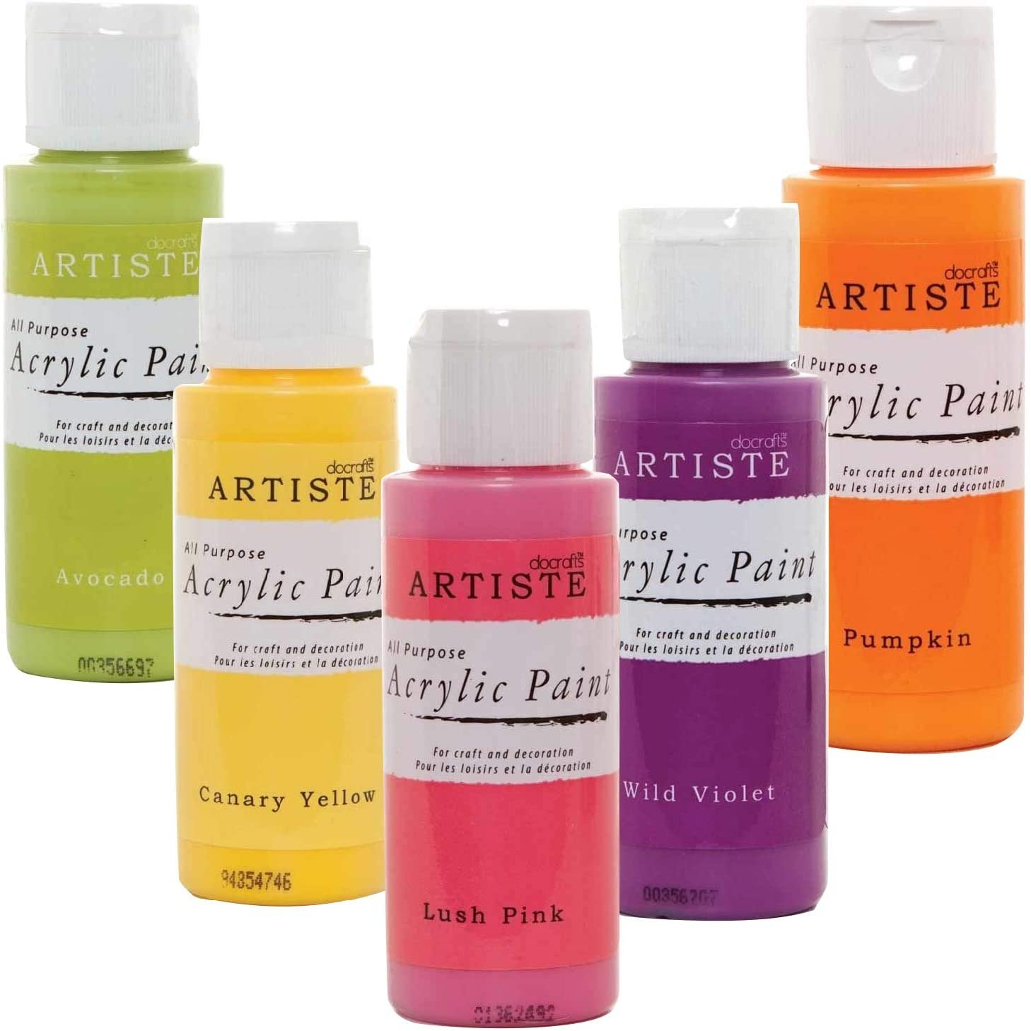 Set of 5 Colours – docrafts Artiste High Quality All Purpose Acrylic Paint (2oz) 59ml – For Painting, Craft and Decoration – Pumpkin, Avocado, Lush Pink, Wild Violet and Canary Yellow