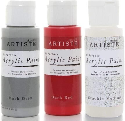 3Ace Crafts 3X docrafts Artiste Acrylic Paint 59ml – for Painting, Craft – Crackle Medium, Dark Grey & Dark Red