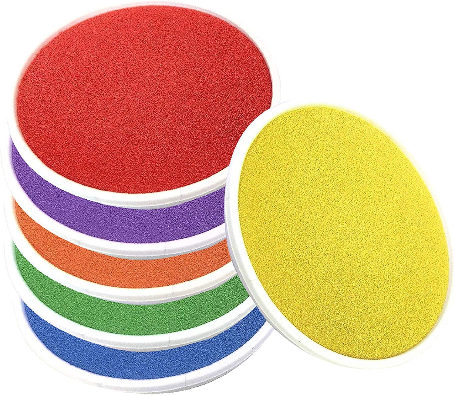 15cm diameter foam pads containing coloured ink in a plastic saucer. Safe to use with hands and feet. Available in individual colours and as a rainbow pad containing all 6 colours.